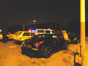 就在記者采訪的時(shí)候,4輛豪車(chē)又回到了奧體北門(mén)。大家停好車(chē),紛紛下車(chē)抽煙聊天。記者急忙追了上去,只見(jiàn)在奧體北大門(mén)西側(cè)路面上,一字排開(kāi)著4輛顏色不一的豪華跑車(chē),車(chē)尾處留下了一道道長(zhǎng)長(zhǎng)的剎車(chē)痕跡,足見(jiàn)停車(chē)前的速度很快。4輛顏色不一的豪華跑車(chē)中,有三輛車(chē)子上沒(méi)有上牌照,有一輛車(chē)子車(chē)牌擋著。車(chē)上下來(lái)的都是年輕人,車(chē)手都是男的,每人身邊跟著一位大美女。車(chē)主們說(shuō)這些跑車(chē)都是自己私車(chē),個(gè)個(gè)都自稱(chēng)是富二代,他們每個(gè)人所開(kāi)的跑車(chē)都在80萬(wàn)至100多萬(wàn)之間,還不是最好的車(chē)輛。見(jiàn)此情況,記者立刻報(bào)了警,并拿出相機(jī)拍照采訪。