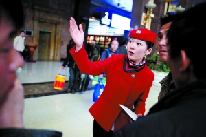 北京站女客運員換“空姐”裝 紅上衣彩絲巾(圖)
