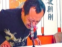 男子訓(xùn)練特異功能 眼睛可夾起4公斤重毛筆
