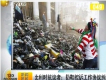 比利時(shí)抗議者扔鞋子 控訴工作協(xié)議糾紛