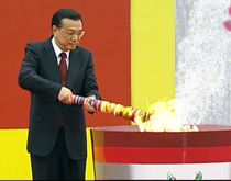 實拍李克強北大點燃深圳大運會火炬