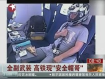 男子在前往溫州的高鐵上戴安全帽全副武裝
