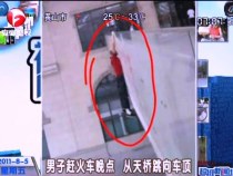 男子趕火車晚點(diǎn) 從5米天橋跳向動(dòng)車頂