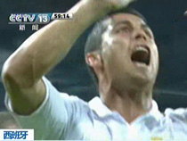 把自己的手指當成小人的兩條腿,用兩個手指做出足球中的各種花哨動作,顛球停球抽射一氣呵成,動作逼真。