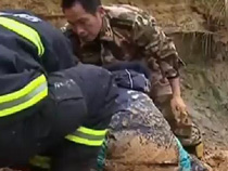 三小孩淘氣陷泥潭 消防緊急扒泥救人