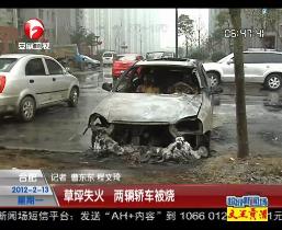 草坪失火 兩輛轎車被燒