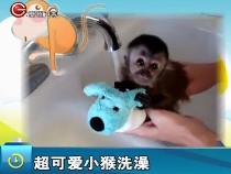 可愛小猴洗澡乖 手抱玩具小熊不吵鬧