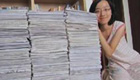 女生曬高中三年考卷 高達2.41米