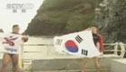 韓國民眾游泳登上爭議島嶼
