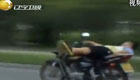 實拍男子騎摩托馬路上表演特技