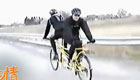 實拍:兩人背坐反著騎另類雙人自行車