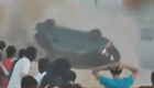實拍轎車失控騰空翻滾司機被甩出