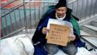 "最美乞丐"邊乞討變舉牌尋銀行卡失主