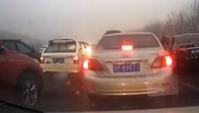 拍客:北京凍雨致高速很多車追尾