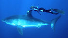 實拍美國女子海底騎鯊魚遨游