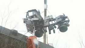 重卡車墜十米橋下 司機掛樹枝奇跡生還