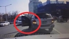 實拍女司機倒車不慎摔出車外