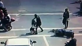 監控視頻:女孩被撞倒反遭暴打