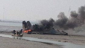 實拍中國蘇27戰機墜毀后起火升起濃煙