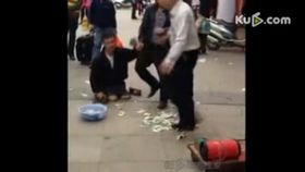 實拍:醉酒男怒打殘疾乞丐 錢撒了一地