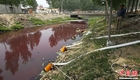 河南西孟姜女河變“血河” 疑企業傾倒廢水所致