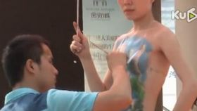 女孩坦胸露背任由異性作畫