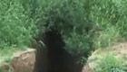 河南新密大雨致路面塌陷 三輛車掉入