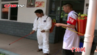 美女主持人直播球賽 被足球砸中腦袋