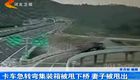 監拍:卡車急轉彎集裝箱被甩下橋 妻子被甩出