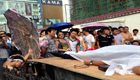 武漢攤販裝死聲討城管 難忍高溫"詐尸"