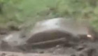 實拍滾滾泥石流沖走汽車