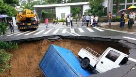 深圳路面突塌陷 兩貨車遭殃