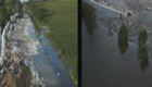 航拍黑龍江肇興鎮堤壩決口前后畫面