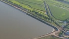 航拍黑龍江嫩江洪水 保護水稻堤壩被沖開