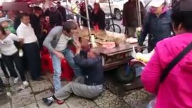 眾人冷漠圍觀男子毆打老人