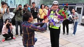 小伙街頭向女交警求婚