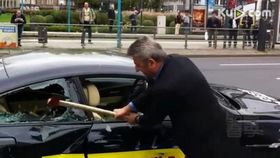 實拍:男子當街持斧頭砸豪車 路人圍觀