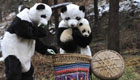 呆萌大熊貓滑雪取樂
