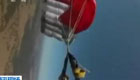高空跳傘遭遇驚魂一刻 降落傘線纏在一起