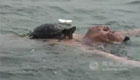 實拍武漢一男子與寵物龜同游漢江
