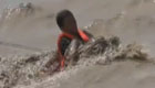 男子被困湍急山洪中