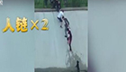 實拍五人手拉手救落水小狗