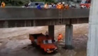 山洪暴發工人被困車頂