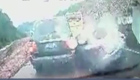 山體滑坡巨石滾落砸扁轎車