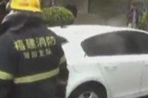 痛心!轎車路邊起火 女童被困車內