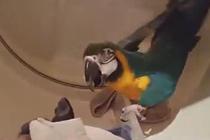 鸚鵡幫主人取烘干衣物