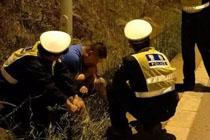 酒駕司機被查路邊狂吃草
