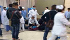 劉翔率先通過安檢門,在工作人員帶領下徑直走向報到處,姚明隨后也彎腰低頭通過大約兩米高的安檢門。
