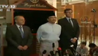【解說】救援官兵立即使用多功能救援擔架,將受傷工人固定好。趕到現場的醫護人員對其進行輸氧。因雨棚搭建較簡易,且承受重量有限,救援官兵經過20多分鐘的緊張救援,才成功將受傷男子救下。
