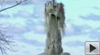 美國(guó)提前入冬 湖邊燈塔成冰雕